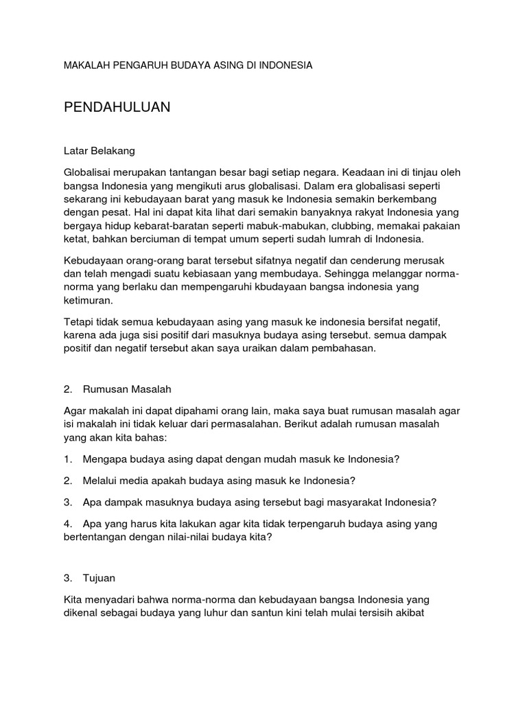 Makalah Pengaruh Budaya Asing Di Indonesia Pdf
