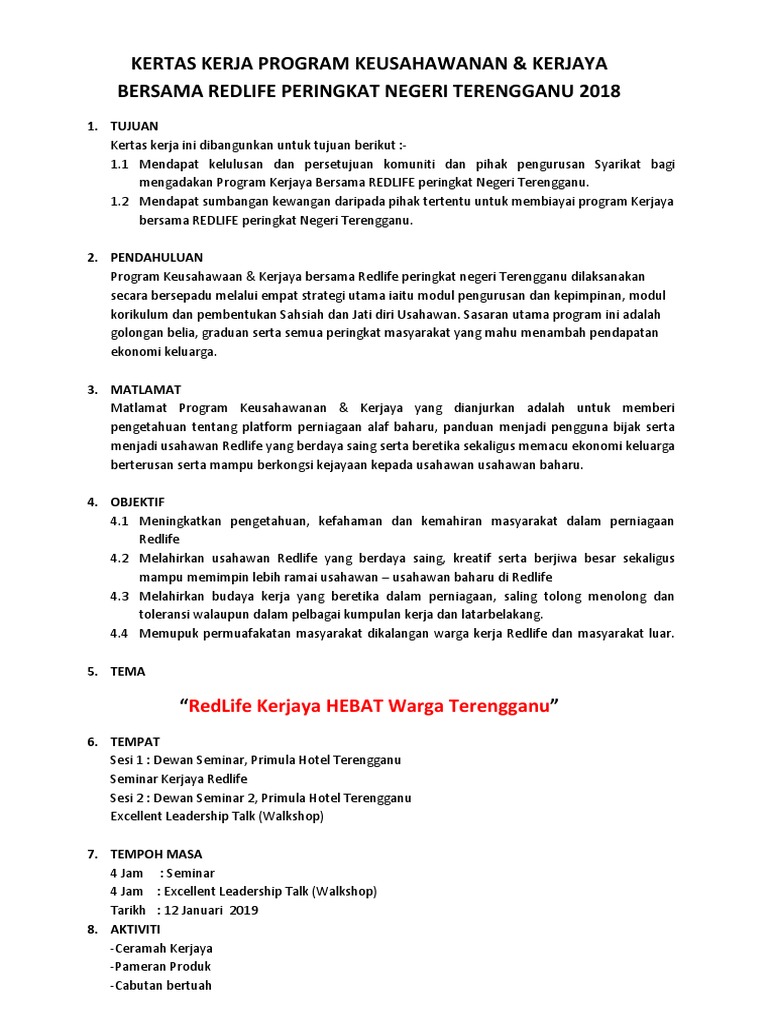 Kertas Kerja Program Kerjaya Redlife Pdf