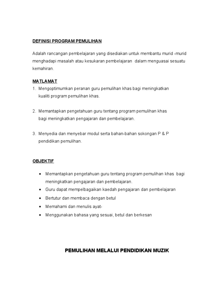 2 vii Gejala bohsia. Kerjasama kepada pengajaran pemulihan dan murid-murid berpendidikan khas yang diletakkan dalam kelas inklusif. Tidak semua kanak-kanak dapat menerima dan menguasai pembelajaran seperti yang diharap dan dirancangkan.